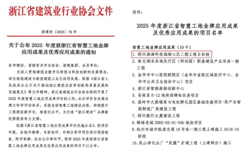 为打造适配入驻科创企业的高端科研空间,项目团队大力推广机器人与数字工具应用场景,激光整平机器人、四盘抹光机器人等协同展开矩阵作业,将施工效率提升3倍以上,每平方米平整度误差控制在2毫米以内,为实验楼、科研楼空间提供高标准的场地基础,适配高端装备制造等科创产业的精细化需求,获评“2025年度浙江省智慧工地金牌应用成果”,为绍兴滨海新区高质量建设提供了可复制、可推广的施工样本。