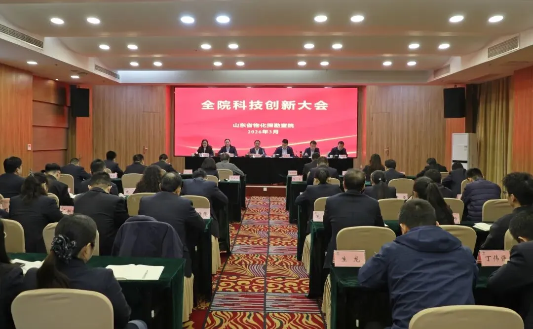 3月12日,山东省物化探勘查院召开2026年全院科技创新大会。院党委书记、院长李志民出席会议并讲话,院党委副书记王成明主持会议,院领导班子成员,总师、总监、专业技术负责、院属各单位负责人、院属各中心总工程师、技术骨干等40余人参加会议。