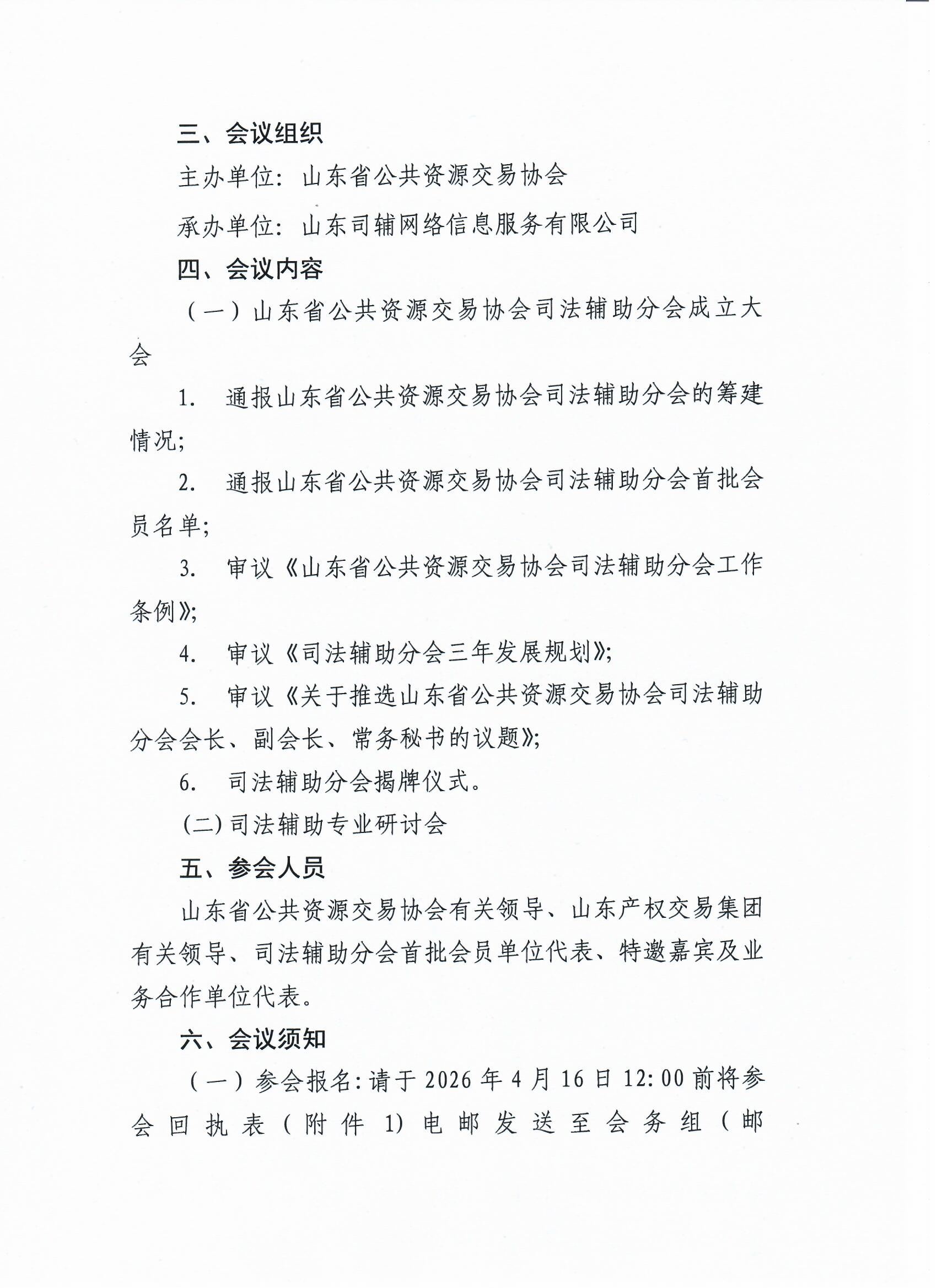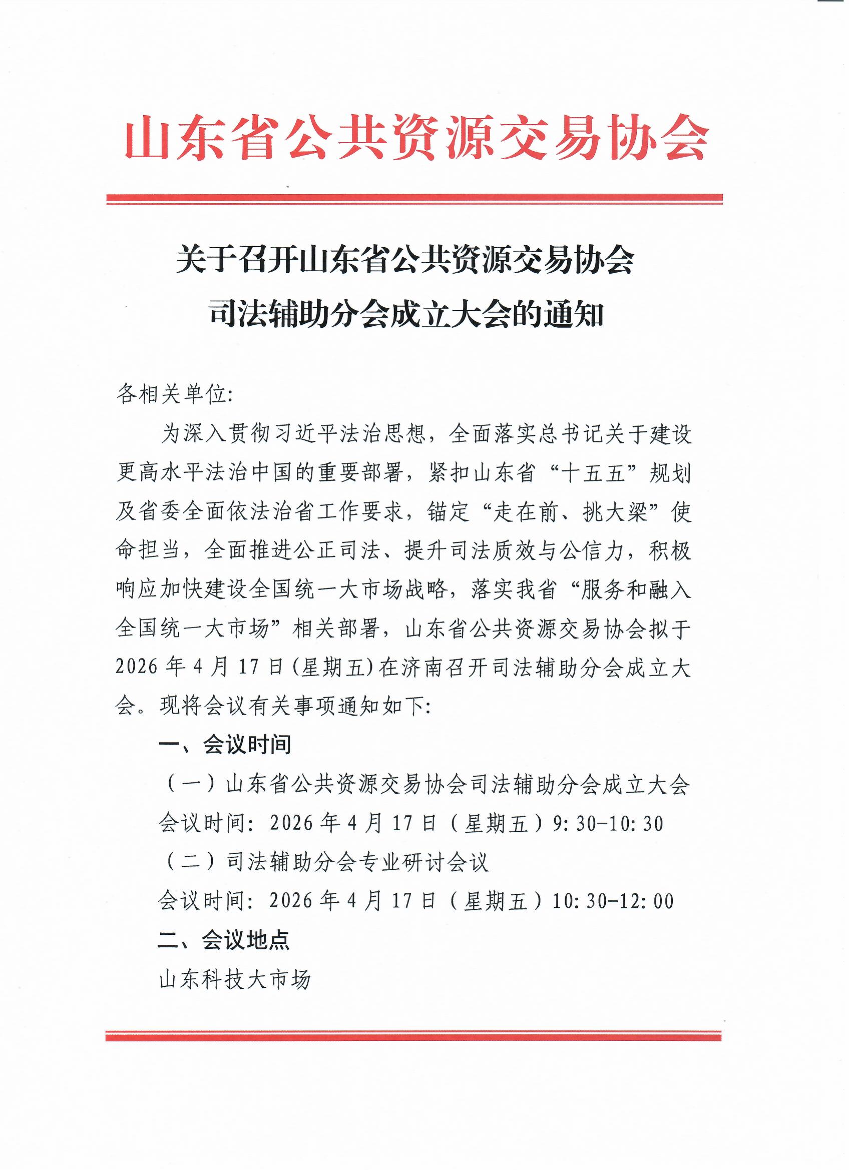 关于召开山东省公共资源交易协会司法辅助分会成立大会的通知