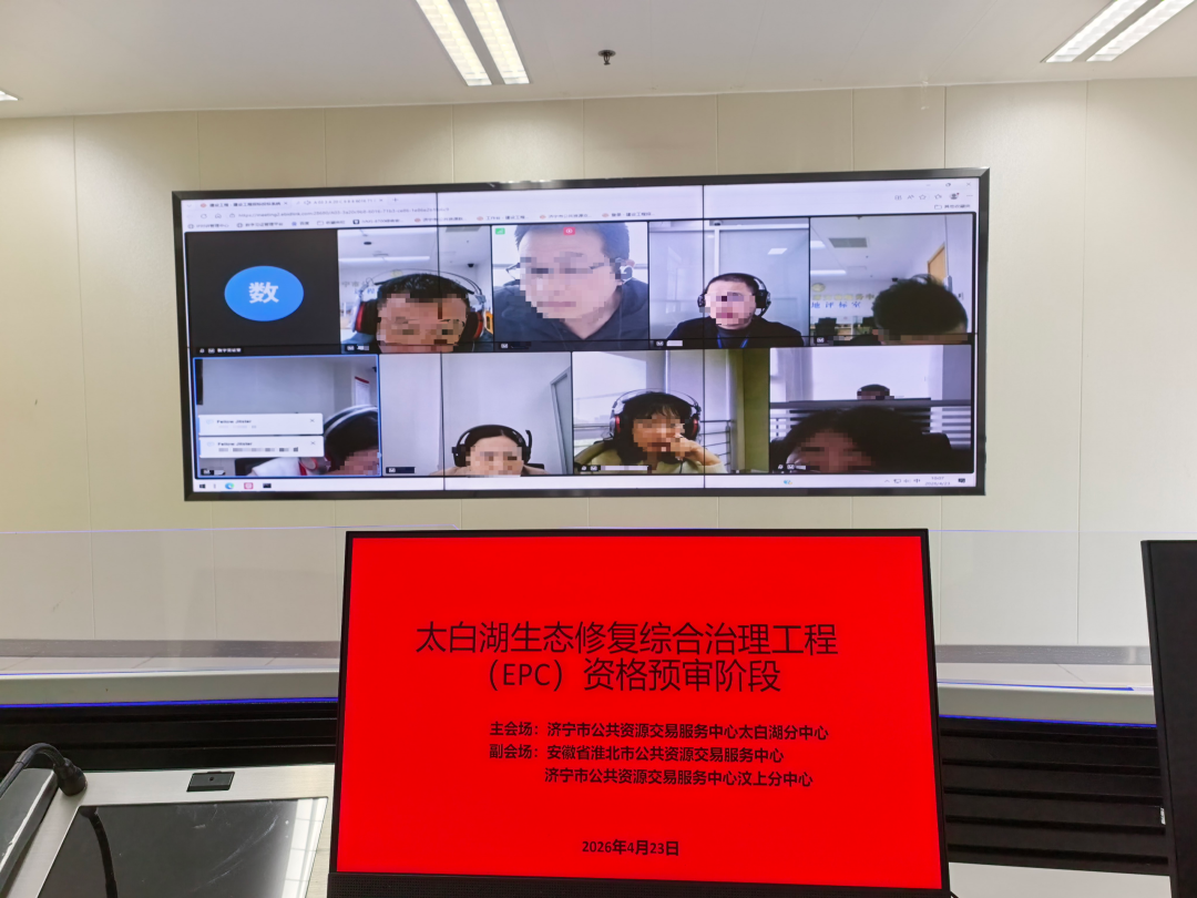4月23日,太白湖生态修复综合治理工程(EPC)资格预审阶段开评标工作圆满完成。该项目共用时2小时40分,系全省首批、全市首个通过国家共享节点互联组件实施的跨省远程异地评审项目。本次评审工作在济宁市公共资源交易服务中心指导帮助下,以济宁市公共资源交易服务中心为主场,淮北市公共资源交易服务中心、汶上分中心为副场,采用“1+N”跨省远程异地与专家席位分散相结合的方式,实现跨省远程异地与多点分散模式深度融合。此次评审的圆满成功,标志着我市跨省、跨区域远程异地评标工作迈入新阶段。